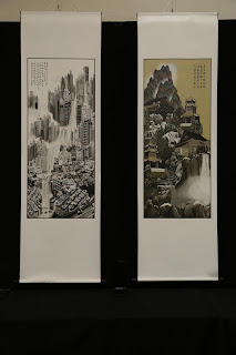 hand using a graphics tablet and printed onto canvas in a scroll form. By